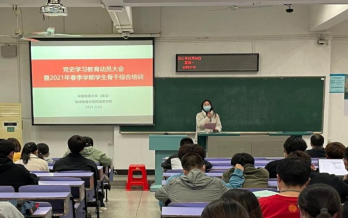 在教三楼306教室召开党史学习教育动员大会暨2021年春季学期学生骨干综合培训。学院党委副书记姜明敏、辅导员刘彦娇参加会议。大会邀请了学校应用心理学研究所所长刘陈陵老师、保卫处副处长单红峰老师和环境学院院办张学海老师分别做有关心理、安全及文稿写作培训。全体学生党支部书记,本、研学生骨干参加大会及培训。辅导员刘彦娇主持会议。