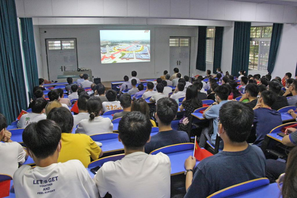 组织党委理论学习中心组及师生代表140余人在基委楼101会议室集中收看大会直播报道,其他师生通过电视广播等线上平台同步观看。