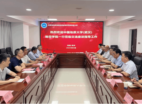 教师李建慧、卞爱飞、刘鹏宇,河南省地球物理空间信息研究院有限公司党委书记、董事长韩红太,总经理李树东、副总经理刘卫、副总经理郑金宝等参加座谈交流。