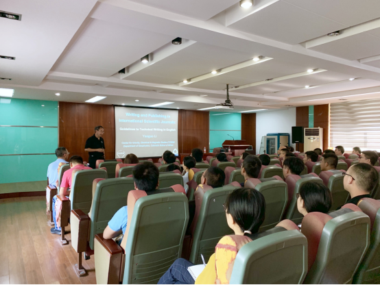 李耀国教授首先介绍了科技写作的重要性,认为科技写作是呈现个人和团队研究成果的重要途径,是个人的学术生涯必不可少的部分,因此,鼓励每个研究生同学掌握科技论文写作技巧和写作规范。李耀国教授从一篇学术论文的基本元素着手,按照Abstract, Introduction, Methods, Results, Discussion和Conclusions的顺序介绍了论文基本单元的特点和写作方法,并以文章为范例,详细探讨了各个要素的写作技巧。最后,李耀国教授结合自身写作和投稿的经历,为同学们介绍了论文投稿和审稿的基本过程。