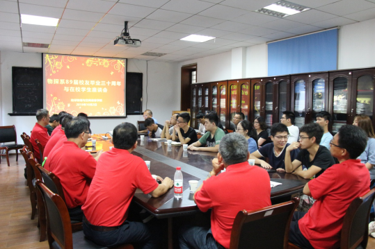 在物探楼214会议室召开毕业30周年返校聚会校友与学生座谈会,孙卫斌、张宗胜、潘新志、王宝明、黎益仕、秦建强、严建文、王殿学等8位校友与20余位在校学生进行了座谈交流。