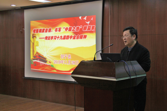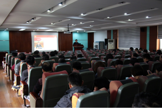 在物探楼222报告厅召开全院教职工大会,学习党的十九届四中全会精神。学院全体教职工参加,会议由学院党委书记刘子忠主持。