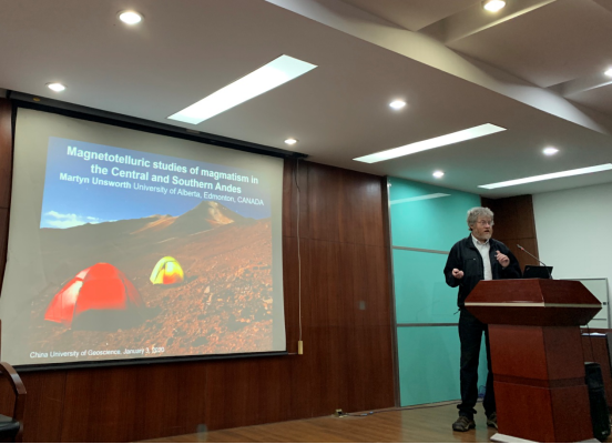 ,并在物探楼222学术报告厅做了“Magnetotelluric studies of magmatism in the Central and Southern Andes”的学术报告,全校40多位师生到场聆听讲座。