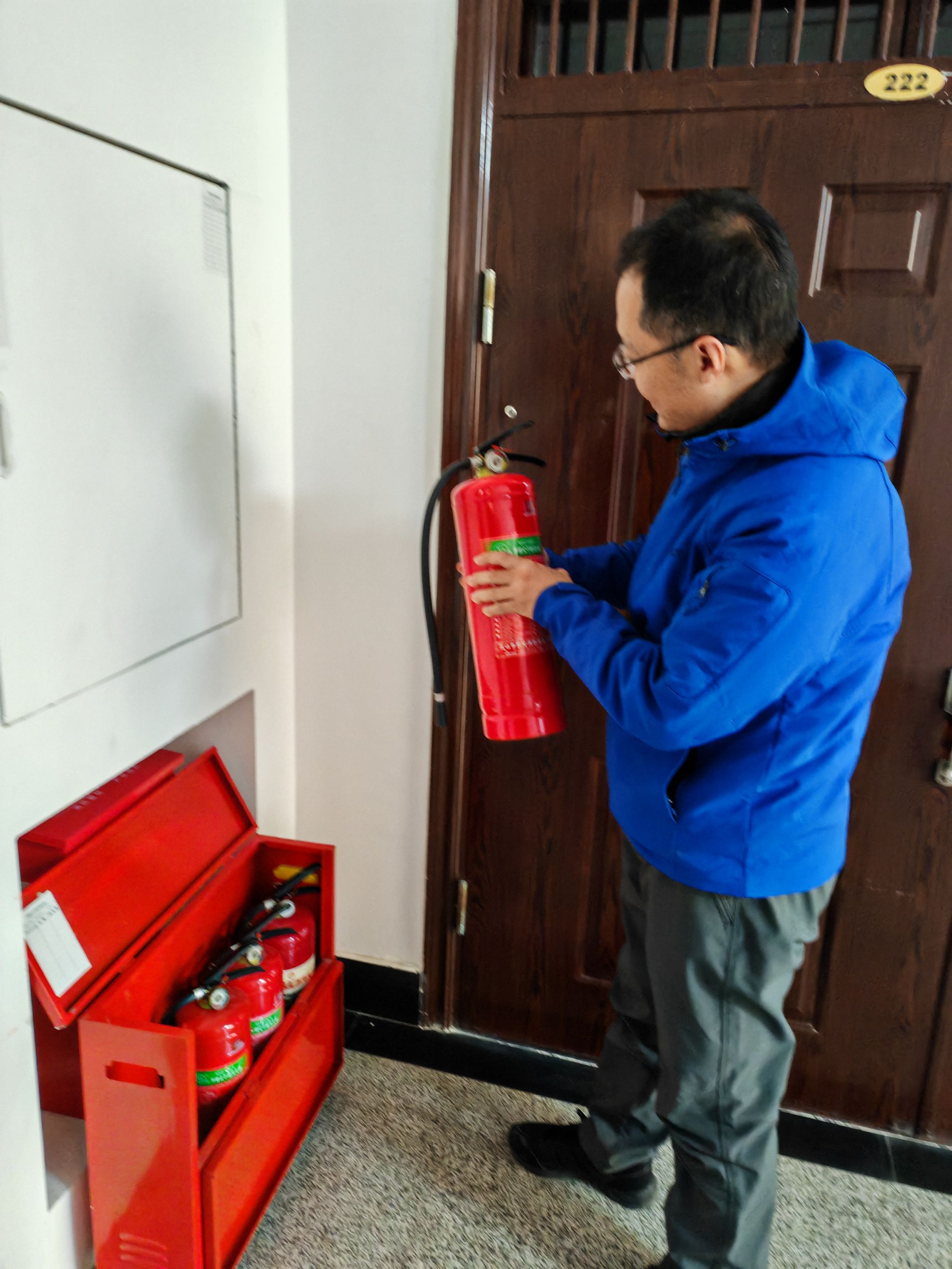严哲副院长一行先后对学院办公室、会议室、实验室、师生工作室、学生宿舍等场所,围绕冬季防火、消防设施、消防通道、仪器设备摆放、化学物品保存、电路线路、大功率电器使用和值班落实进行拉网式检查。结合检查情况,提出整改要求,并提醒留校学生提高防火意识,遵守纪律,安全用电,保障安全,确保师生度过一个平安、祥和的假期。