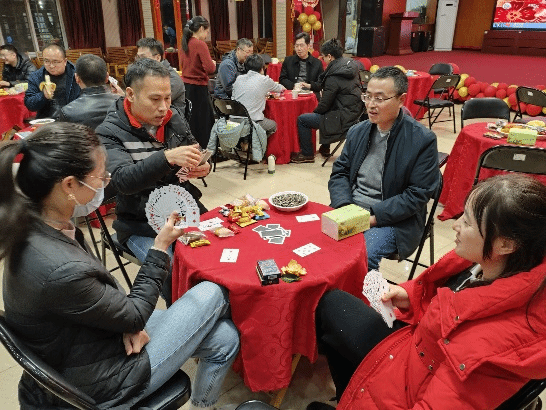 活动中,老师们登台献唱、一展歌喉,用美妙的旋律送上新年祝福,动听的歌声引来一阵阵掌声。更多的老师们则是自由组队进行益智棋牌活动,现场气氛温馨快乐,欢声笑语此起彼伏。