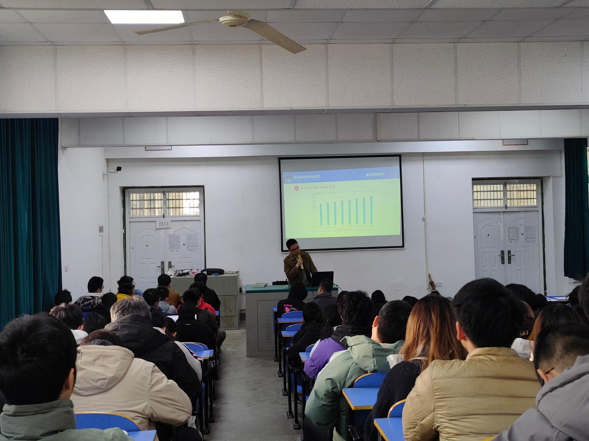 首先,祁阳阳老师从就业形势展开,分别给学生讲解了目前就业政策、经济形势、单位需求、毕业供给,细致分析了大学生就业与当前的行业经济发展、就业政策等内容,为同学们提供了较为完整的就业思路。同时,他并为同学提供以下建议:1.认真分析确立自身的职业生涯规划,细致做好就业准备,2.提高自我的社会适应能力,提升就业水平,3.合理看待薪资待遇。4.转变就业观念,树立先就业再择业的就业观。